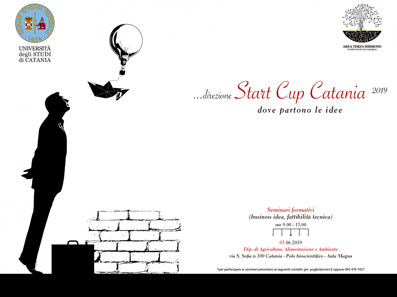 L’Area Terza Missione, ripartizione trasferimento tecnologico, di questo Ateneo, in vista della Start Cup Catania 2019, sta organizzando un ciclo di seminari formativi sulla cultura di impresa. Obiettivo è fornire i concetti base al fine di poter formulare al meglio la propria business idea e verificarne la relativa fattibilità tecnica.