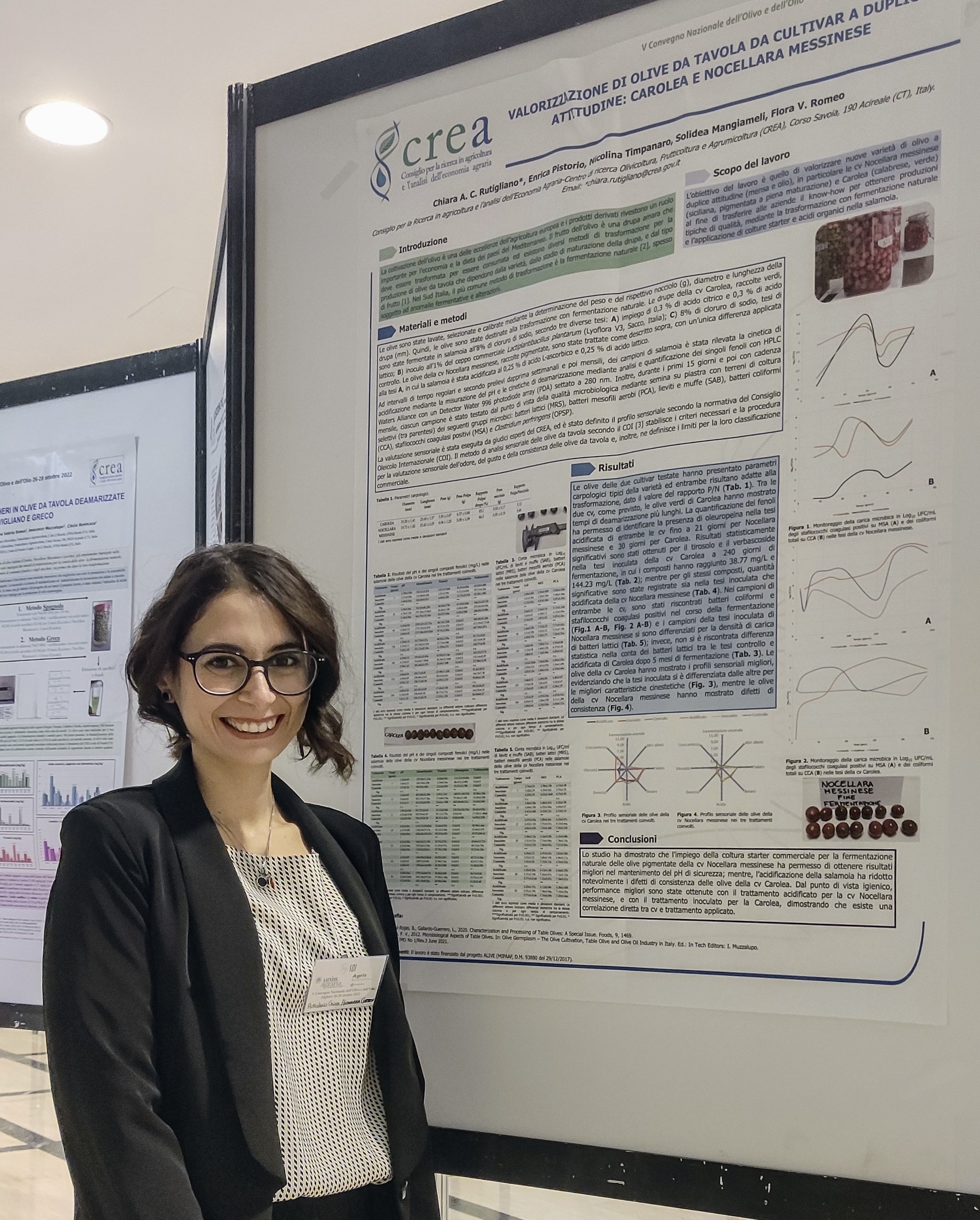 dal 01.07.2021 al 31.12.2022: Borsista di ricerca presso il Consiglio per la ricerca in agricoltura e l’analisi dell’economia agraria (CREA) - Centro di ricerca Olivicoltura, Frutticoltura e Agrumicoltura (OFA), C.so Savoia 190 Acireale (CT). Attività di ricerca sulla tematica “Valutazione delle cultivar di olivo a duplice attitudine per una loro valorizzazione nella produzione di olive da tavola”, relativa al progetto ALIVE “Caratterizzazione e valorizzazione delle olive da tavola e a duplice attitudine”.
