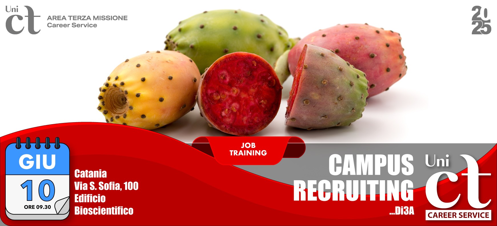 L’evento di Campus Recruiting si svolgerà il 10 giugno 2025, a partire dalle 9:30, presso l'Aula Magna dell’Edificio Bioscientifico del Di3A.