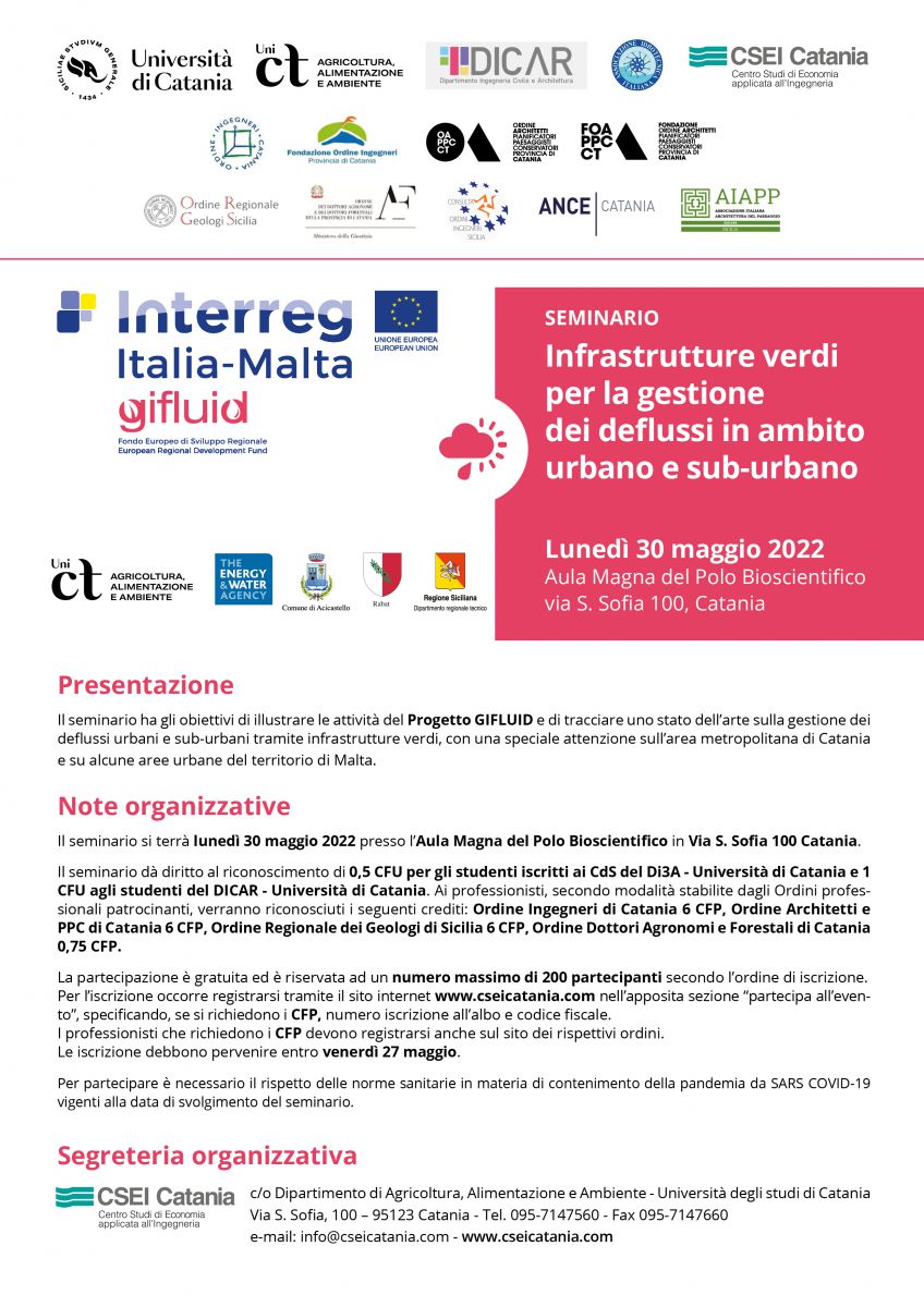 Infrastrutture verdi per la gestione dei deflussi in ambito urbano e sub-urbano Ore 09.00 Aula Magna - via S. Sofia 100 Programma dell'evento Condividi Facebook Twitter Whatsapp Telegram Email