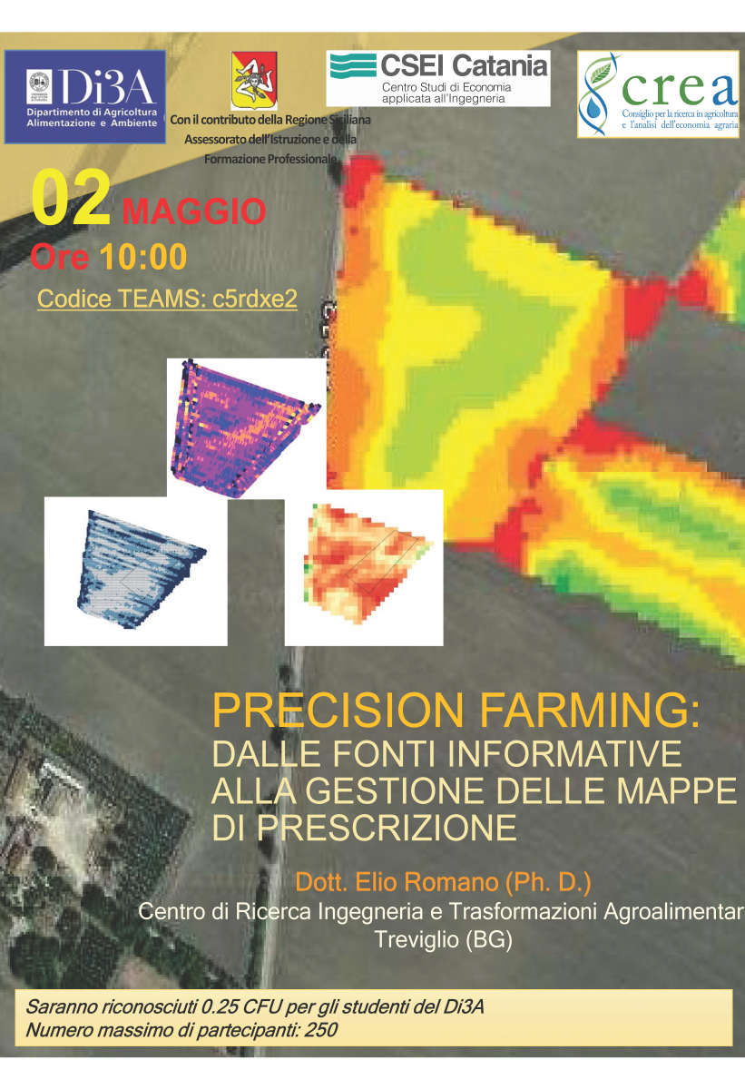Seminario PRECISION FARMING 2 Maggio 2020 ore 10 per via telematica Condividi Facebook Twitter Whatsapp Telegram Email