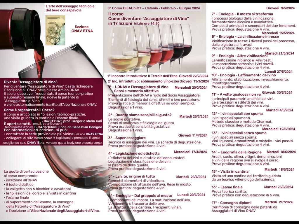 8° corso per assaggiatore di vino Di seguito il calendario degli incontri che si terranno a partire dal 20 Marzo ore 14.30 Data di pubblicazione: 19/03/2024 Condividi Facebook Twitter Whatsapp Telegram Email