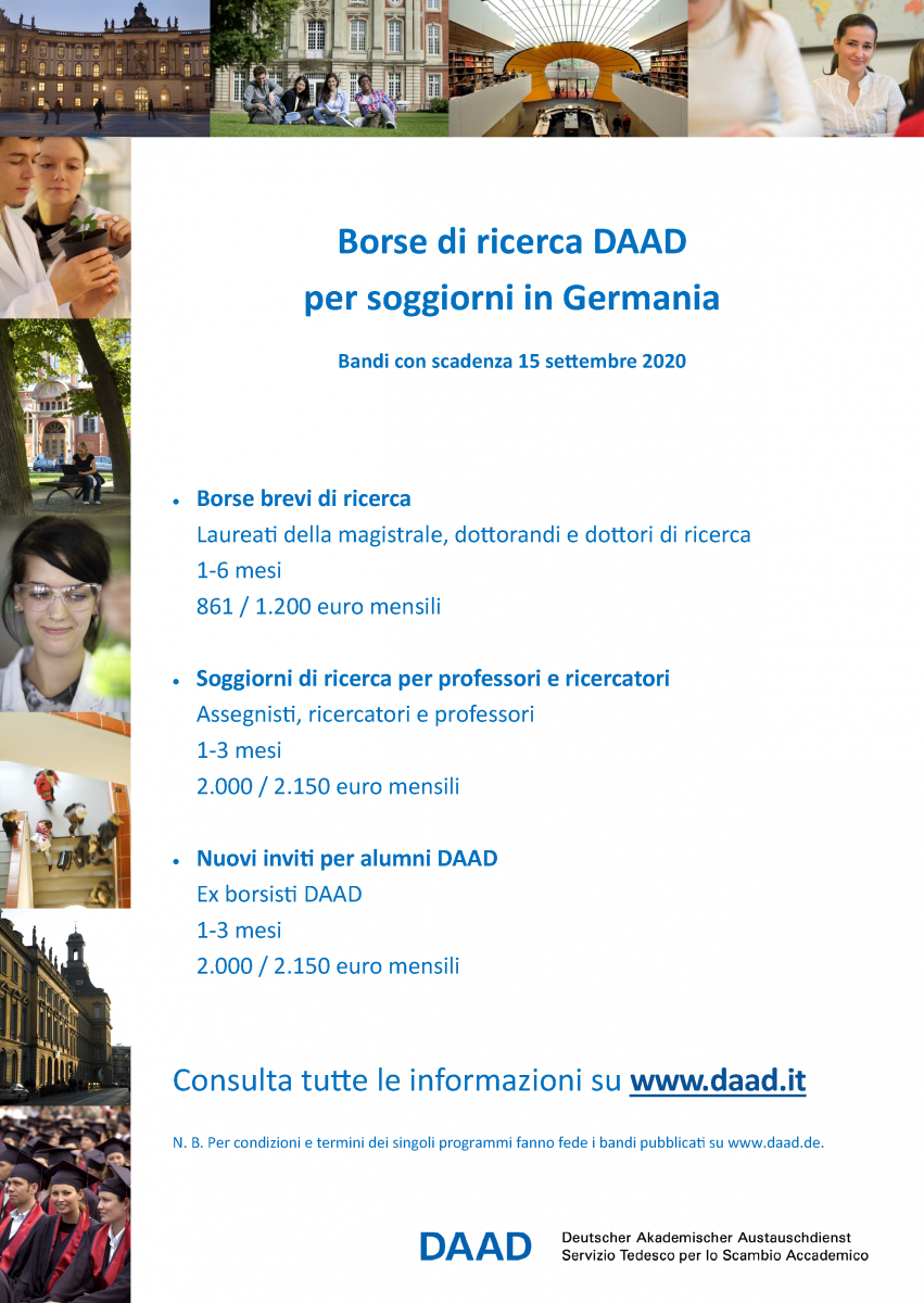 Opportunità di borse di ricerca per laureati, dottorandi, dottori di ricerca, assegnisti e staff docente per soggiorni in Germania. Info su: www.daad.it