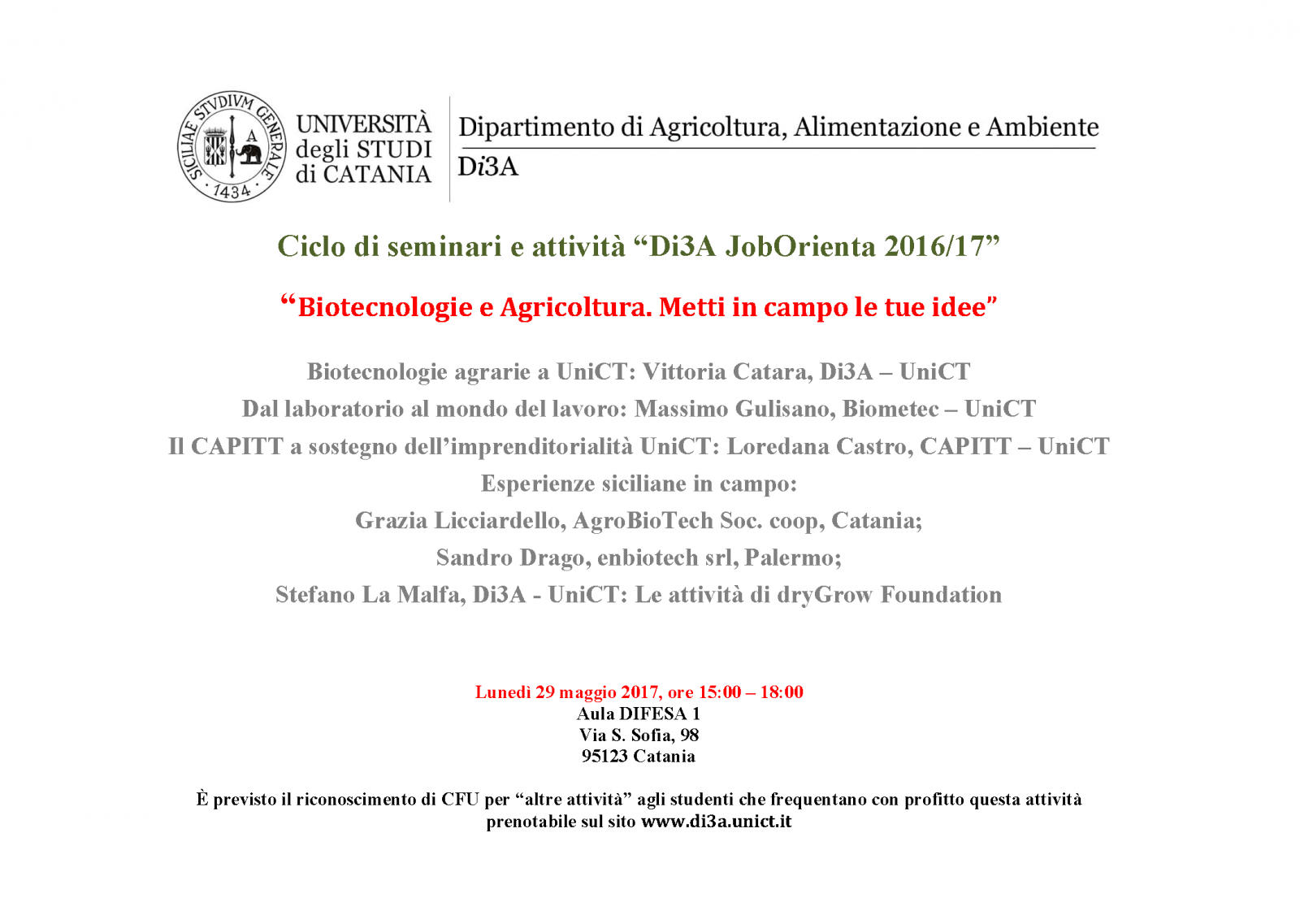 Ciclo di seminari e attività “Di3A JobOrienta 2016/17” Modulo iscrizione Data di pubblicazione: 24/05/2017 Condividi Facebook Twitter Whatsapp Telegram Email