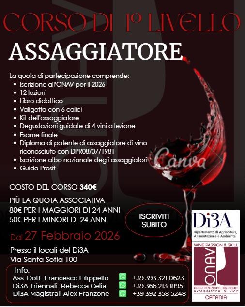 Per procedere con l'iscrizione al Corso Assaggiatore ONAV di 1° livello per studenti e personale Unict accedere al Link:https://onav.it/corsi/8862-corso-per-assaggiatore-e-sommelier--1-livello--56-universit-di-catania-di3aquesto