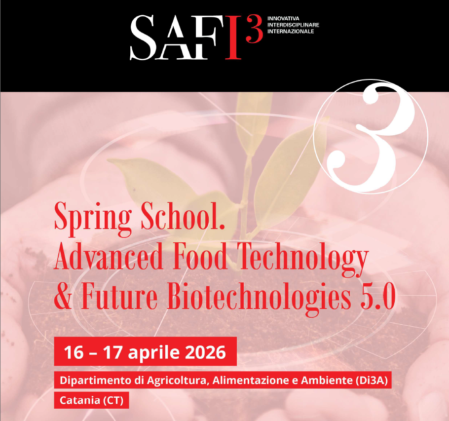 In allegato, il programma dell’evento e il Book of Abstracts della SAFI³ Spring School “Advanced Food Technology & Future Biotechnologies 5.0”, che si terrà in Aula Magna presso il Dipartimento di Agricoltura, Alimentazione e Ambiente il 16 e 17 aprile 2026.