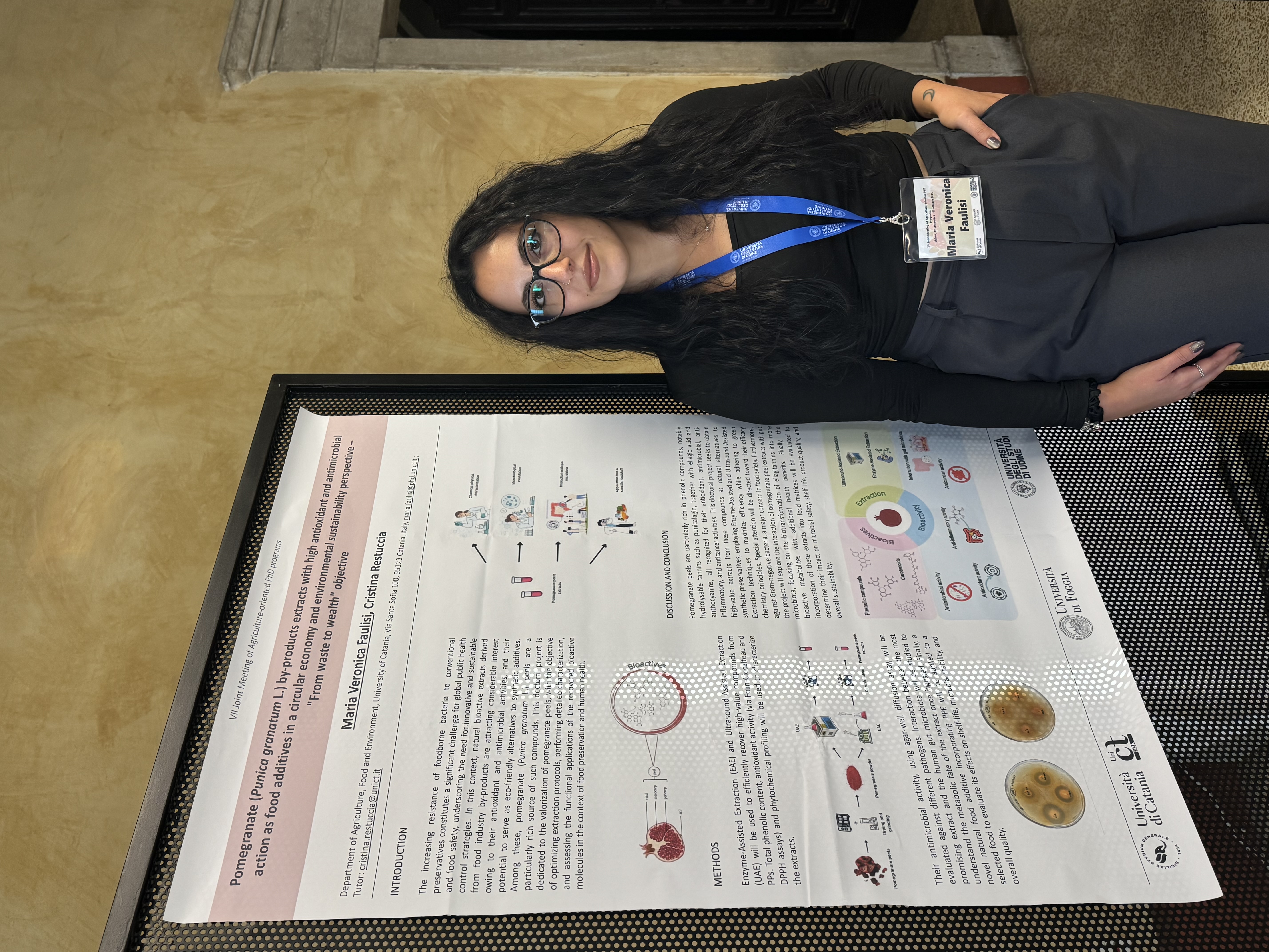 - 2024 - 2027: PhD Course in Agricultural, Food and Environmental Sciences, University of Catania. Research project: "Pomegranate (Punica granatum L.) by-products extracts with high antioxidant and antimicrobial action as food additives in a circular economy and environmental sustainability perspective – "From waste to wealth" objective". Tutor: Dr. Cristina Restuccia